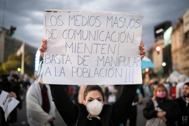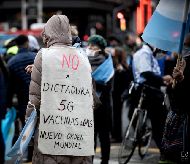 Além das máscaras, da distância social e dos níveis de pobreza inéditos, a crise da COVID 19 nos deixou um novo cenário: a desconfiança nas certezas científicas. As manifestações no obelisco [1] mostram que grupos de pessoas desconfiam das recomendações médicas, que o Sars-CoV-2 não existe, que existe mas é uma invenção de laboratório, afirmam que existe um plano de Bill Gates e Georges Soros para acabar com o terceiro mundo, que o governo chinês “inventou” a pandemia para impor 5G, que as mortes são falsificadas, exageradas, mal contadas. Nas redes sociais publicações sistemáticas compartilham vídeos de “médicos pela verdade”, fala da “falsa pandemia”, imagens e textos com frases como “não seja cego, eu abri meus olhos” ou “não vamos ser cobaias para a vacina”.