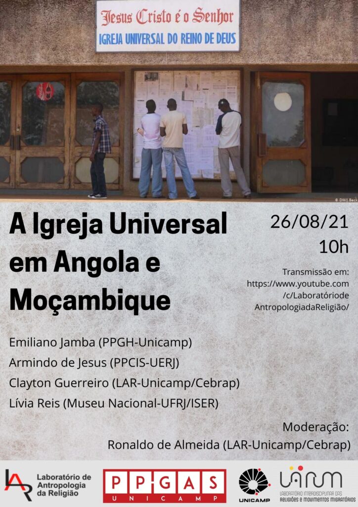 No dia 26 de agosto, às 10h, o Laboratório de Antropologia da Religião realizará, em pareceria com o Laboratório Interdisciplinar das Religiões e Movimentos Migratórios (LÄRM) da Universidade do Estado do Rio de Janeiro (UERJ), o evento “A Igreja Universal em Angola e Moçambique”, com a intenção de debater os recentes acontecimentos políticos envolvendo a presença da Igreja Universal nesses países.