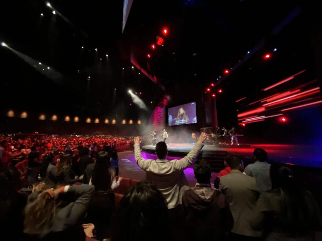 A reunião começa com um período de música de aproximadamente 40 minutos. Tudo com uma banda que se assemelha a qualquer banda secular do momento, músicas com ritmos animados e lentos porém sempre com letras de estilo mantra ou chiclete. A partir de então, tudo acontece como esperado em uma igreja evangélica padrão. Um momento informativo sobre o que está acontecendo na igreja, seguido de uma mini pregação para preparar o momento de ofertas e dízimos até culminar na pregação. O que chamou minha atenção foi a maneira de comunicar os anúncios informativos da igreja com um vídeo dinâmico e bem produzido que passava as informações da mesma maneira que é feito em programas de televisão ou em anúncios do YouTube, que devem passar informação de forma eficaz e concisa.