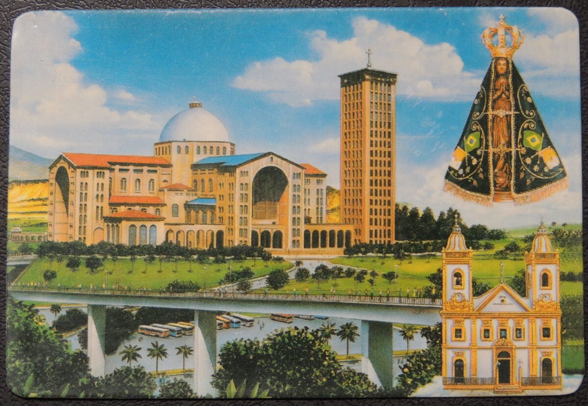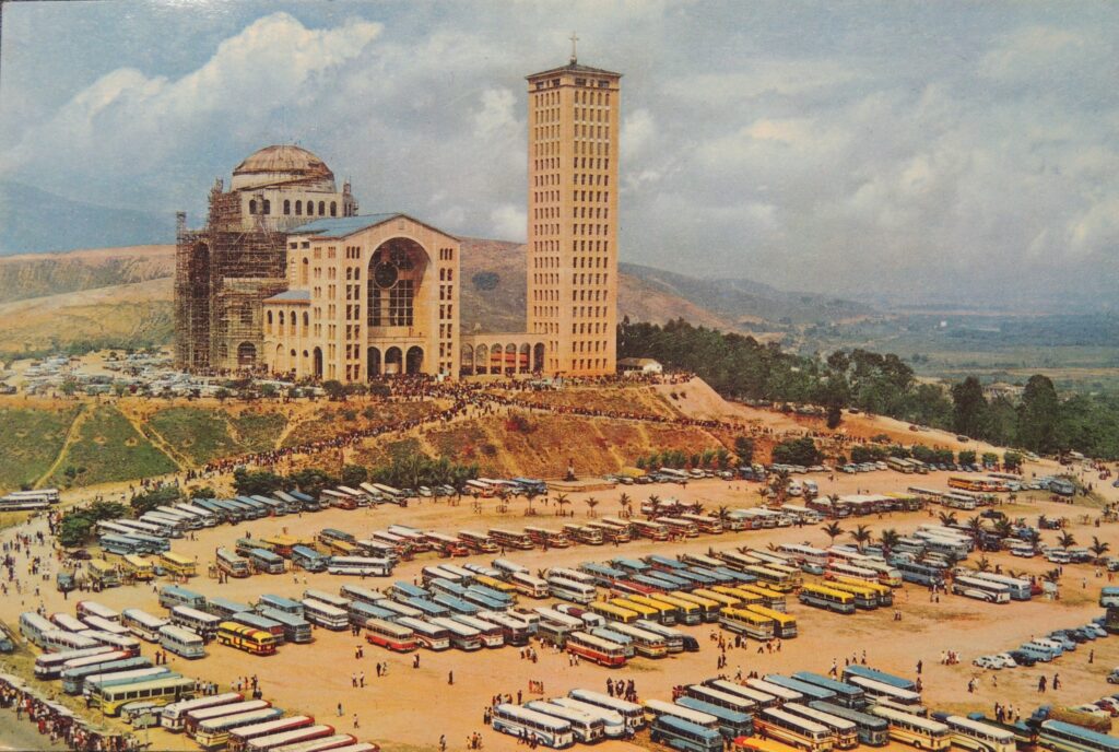 A velha e a nova Basílica de Aparecida em um cartão dos anos 1990