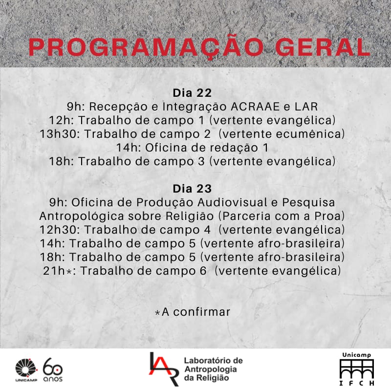 21h: Trabalho de campo 6 (vertente evangélica): Culto evangélico na UNICAMP, Teatro de Arena com Aviva Universitário.