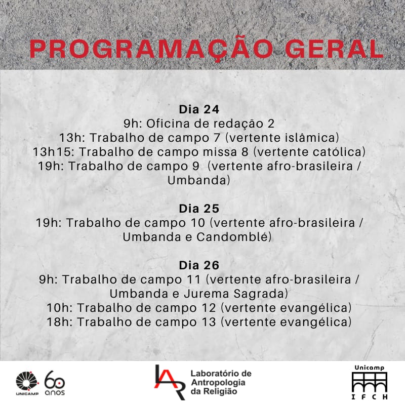 12h30: Trabalho de campo 4 (vertente evangélica): Culto evangélico na Capela do Hospital das Clínicas – UNICAMP