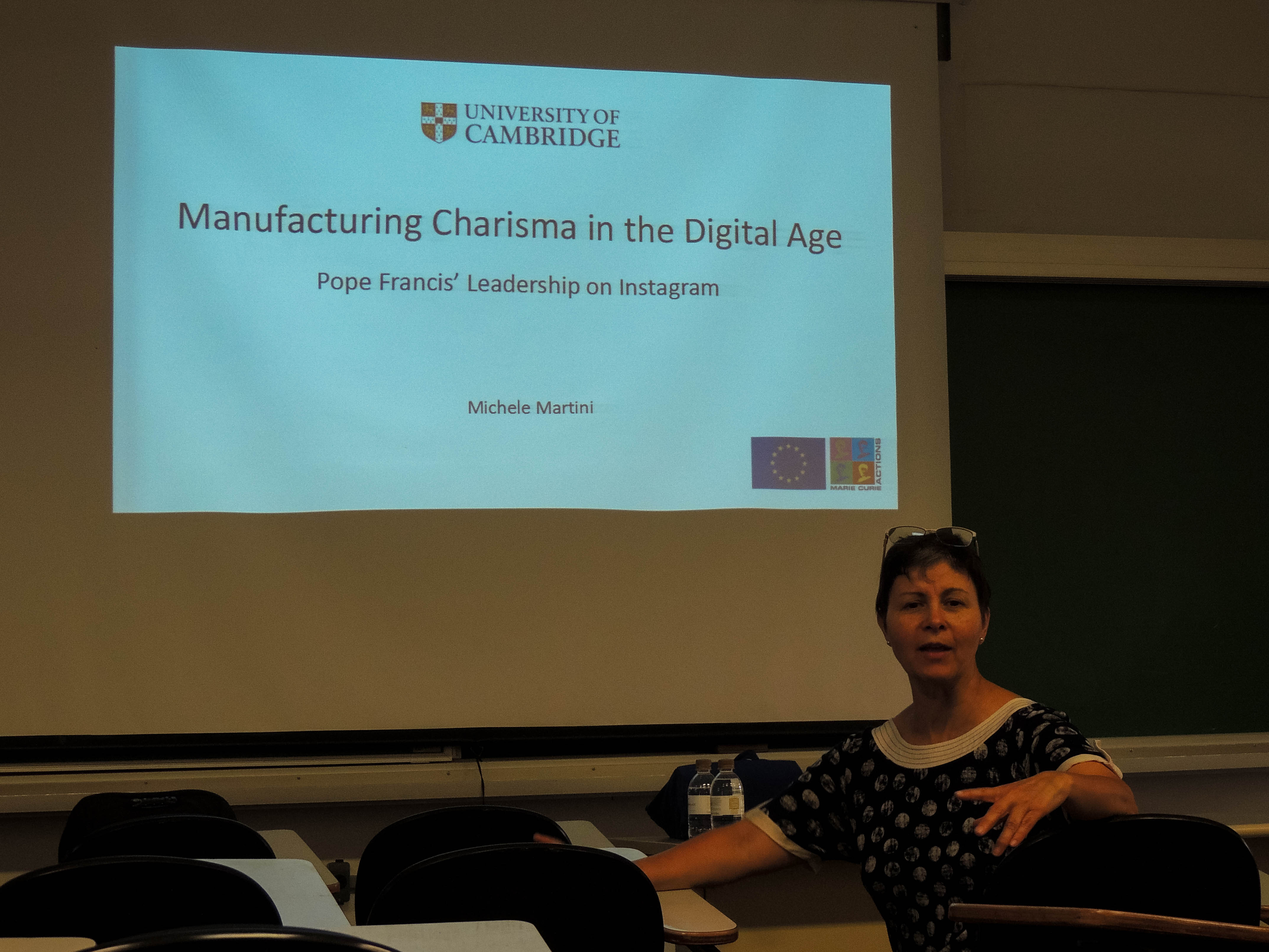 De acordo com seu relato, sua pesquisa se iniciou com a seguinte questão: como a autoridade religiosa é construída, reafirmada e implementada por instituições religiosas nessa rede social em particular? Assim, baseando-se amplamente nos pressupostos teórico-metodológicos da semiótica, Michele pôde analisar cerca de 500 fotografias, o número completo de imagens que até aquele momento haviam sido publicadas no perfil papal.